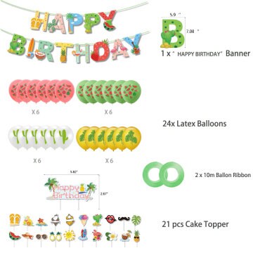 Tropical Hawaii Tableware Kit | HPBD Banner, cake toppers, Aloha Balloons | Tropical Hawaii, Aloha Luau, Summer, Flamingo Themed Birthdays