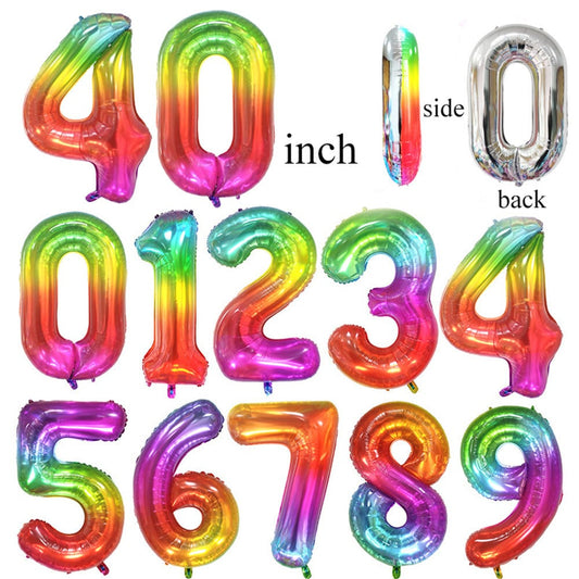 Rainbow Number Balloon – Colorful Jell-O Style Birthday Party Decor for Kids and Adults Birthday Party - Jumbo Foil Balloon 40''