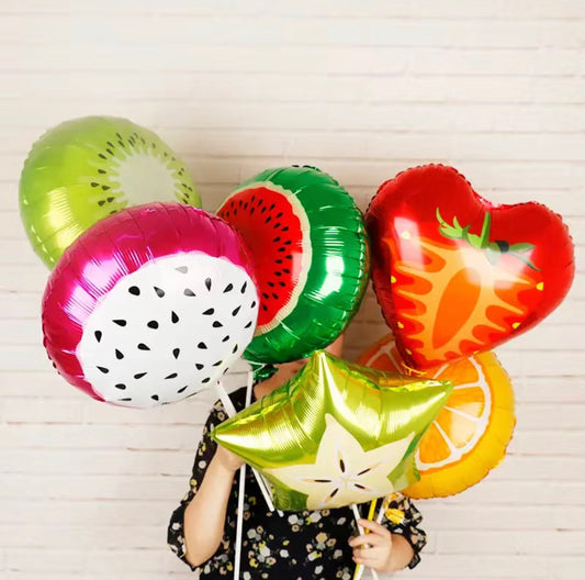 Summer Fruit Balloons - Set of 6 Random Tropical Fruit Balloons 18'' - Perfect for Tutti Fruity Theme Party - Helium Supported