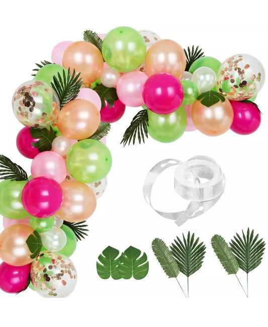 Tropical Balloons Arch Garland Kit – Hot Pink, Green, Rose Gold Confetti Balloons, Palm Leaves & Tools – Perfect for Summer, Luau, Flamingo, and Hawaii–Themed Parties – 83 pcs Bundle